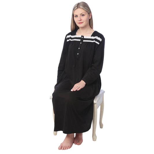Women Jersey Long Nightgown Long Sleeve Elegant Loose Dress