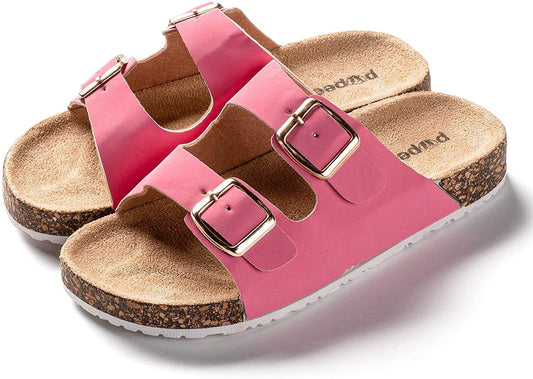 Pupeez Girls Comfort Sandals Double Buckle Adjustable Slip on Summer Slides Soft Footbed