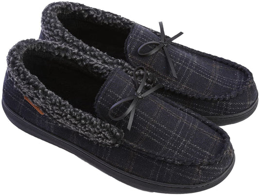 Men's Slippers Moccasin Plush Lined House Shoes Fuzzy Furry