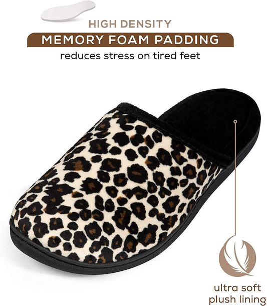 Roxoni Women's Gorgeous Comfort Clog Slipper with Pretty Leapord Print Inner