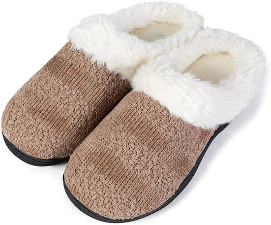 Roxoni Women's Plush Slip On Memory Foam Indoor Outdoor