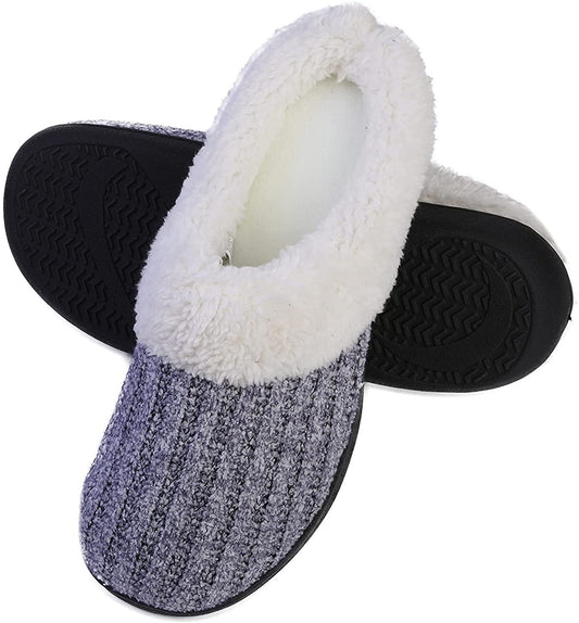 Roxoni Women's Slippers Cozy Fleece Warm Clog Knit Winter Ladies House Shoe Non-Slip