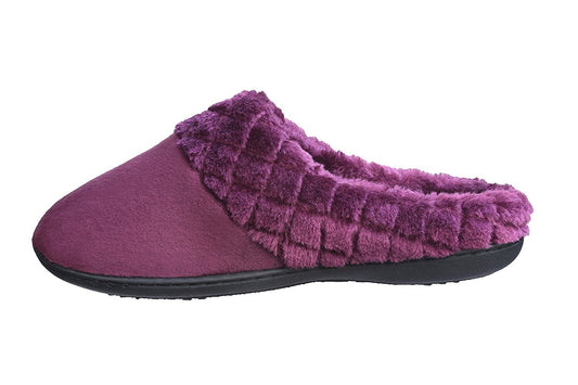 Roxoni Women’s Velour Slippers Memory Foam Clog Quilted Faux Fur Collar