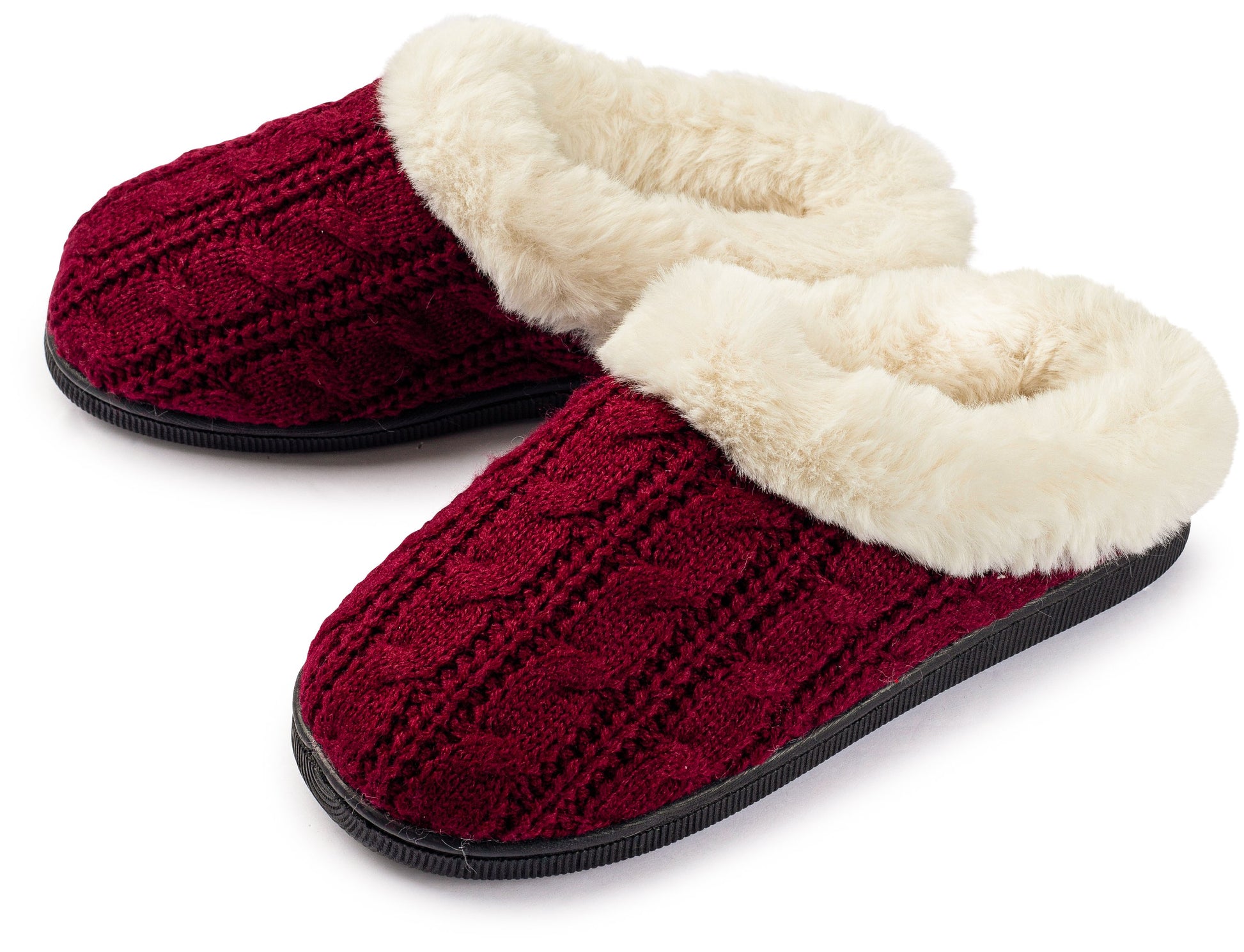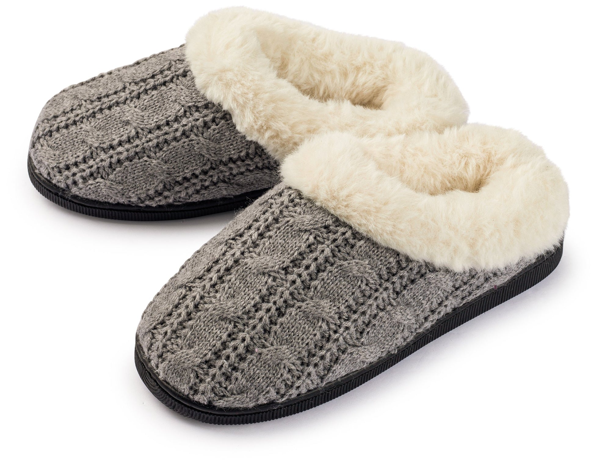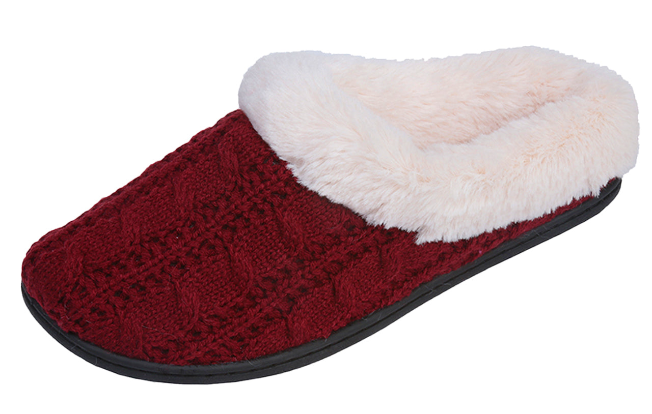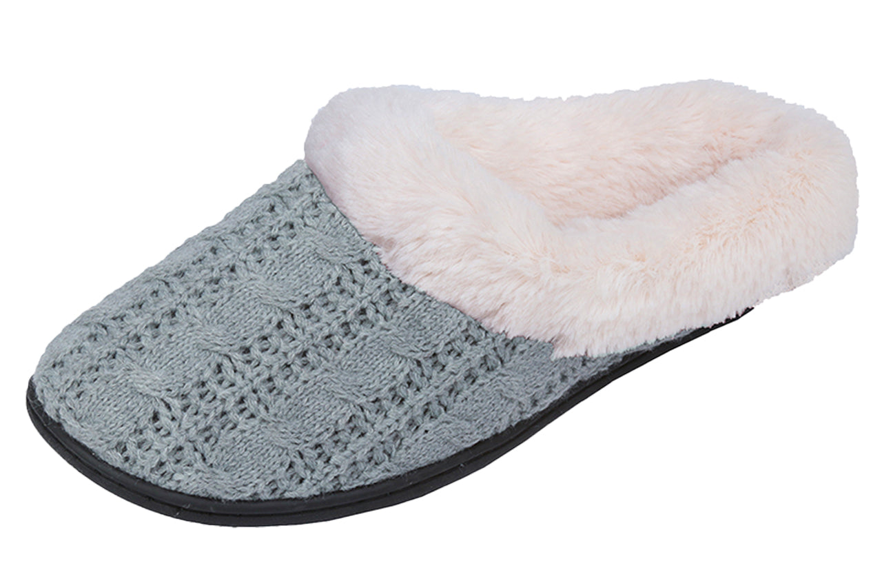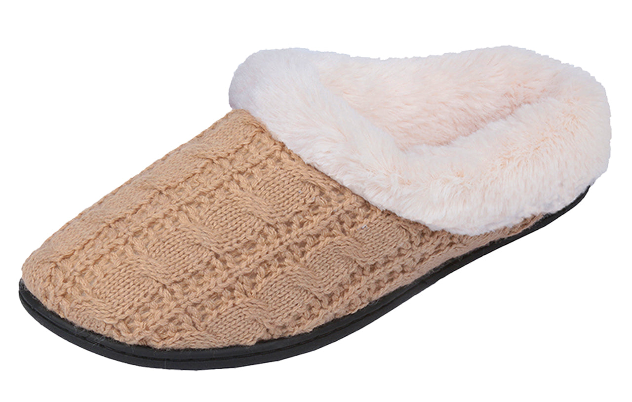 Features: -Cable Knit upper for a plush, elegant and delicate touch. -Textured out-sole for durability & traction; High density EVA sole, soft and lightweight. -Cushioned foot bed molds to the foot for a perfect fit; great for wearing all day long. -Great for indoor and outdoor use. -Very comfortable and always trendy. -Super comfy fleece insole. -Durable rubber sole for long lasting comfort.