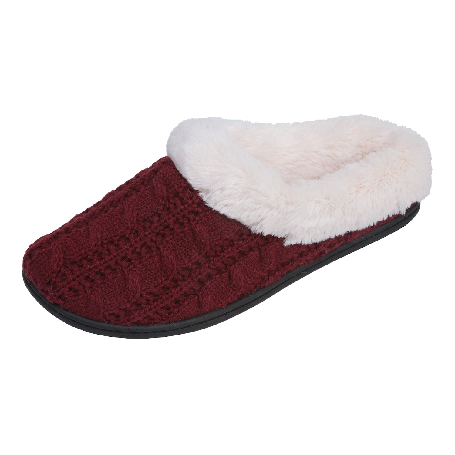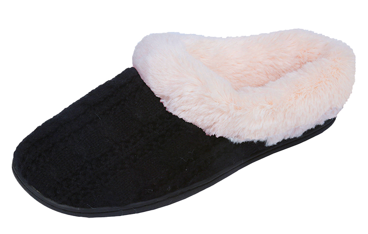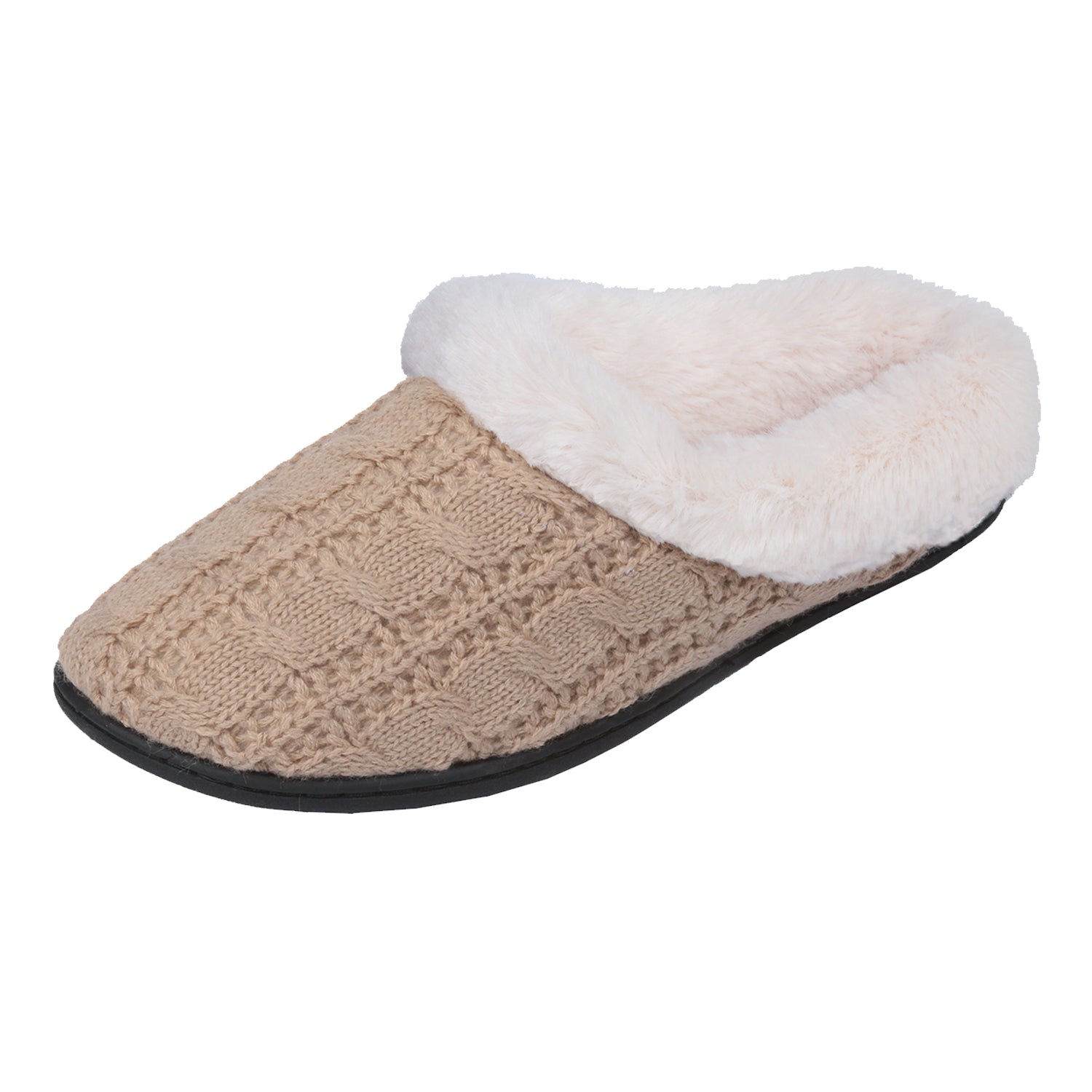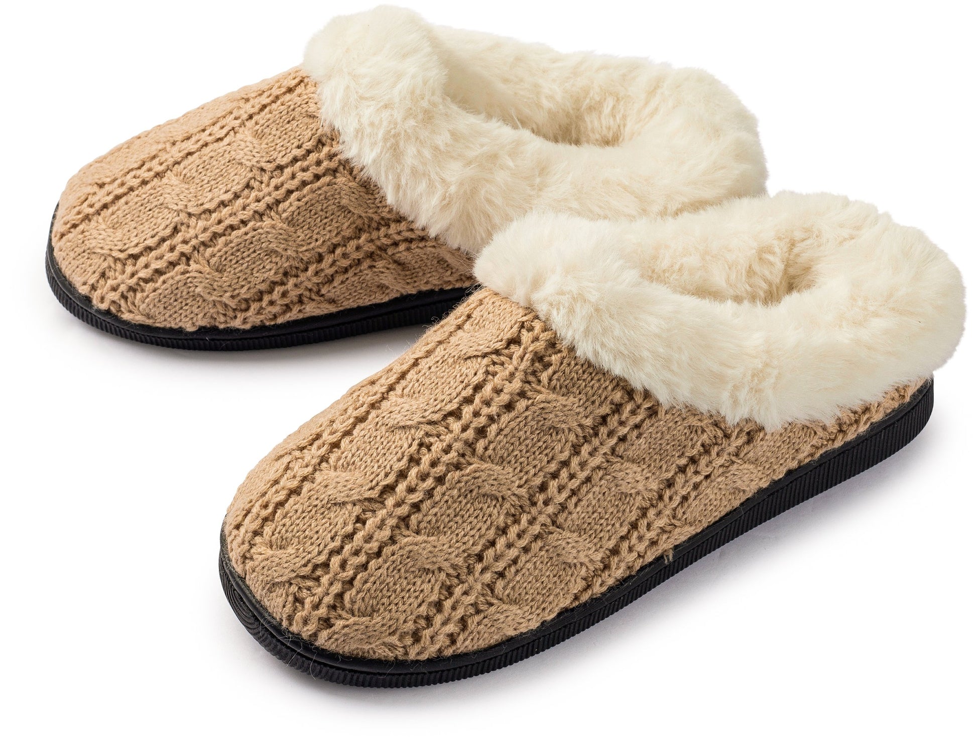 Features: -Cable Knit upper for a plush, elegant and delicate touch. -Textured out-sole for durability & traction; High density EVA sole, soft and lightweight. -Cushioned foot bed molds to the foot for a perfect fit; great for wearing all day long. -Great for indoor and outdoor use. -Very comfortable and always trendy. -Super comfy fleece insole. -Durable rubber sole for long lasting comfort.