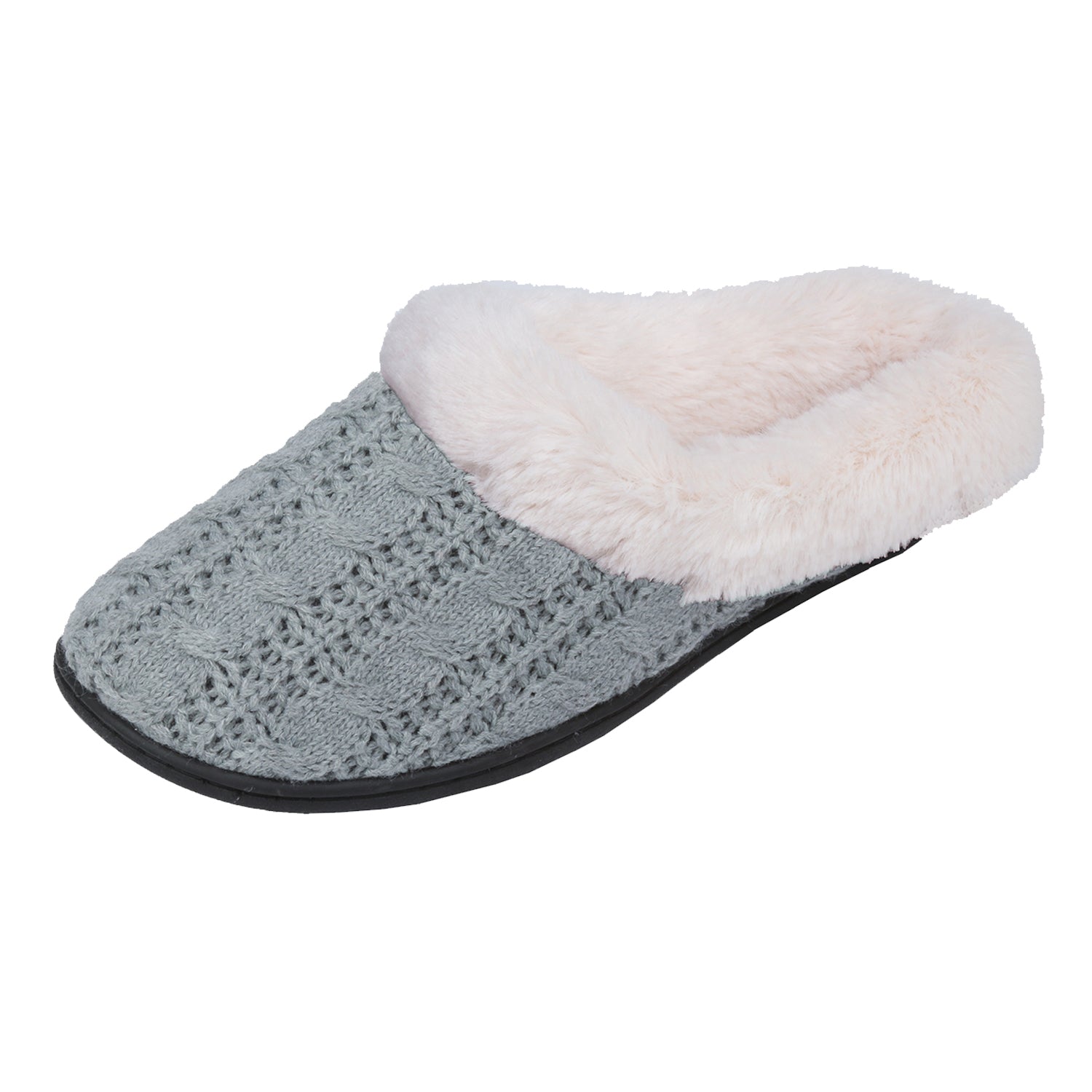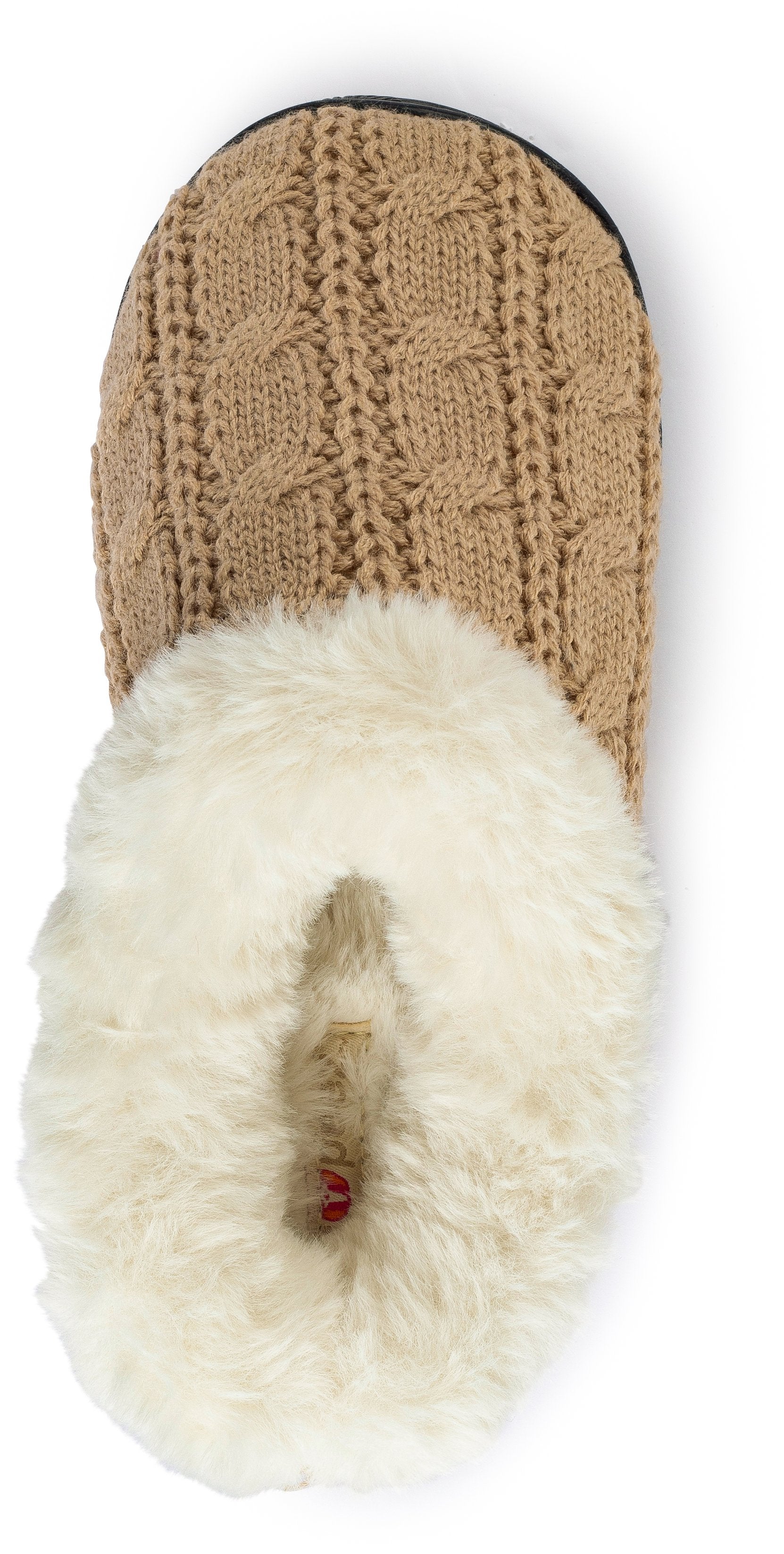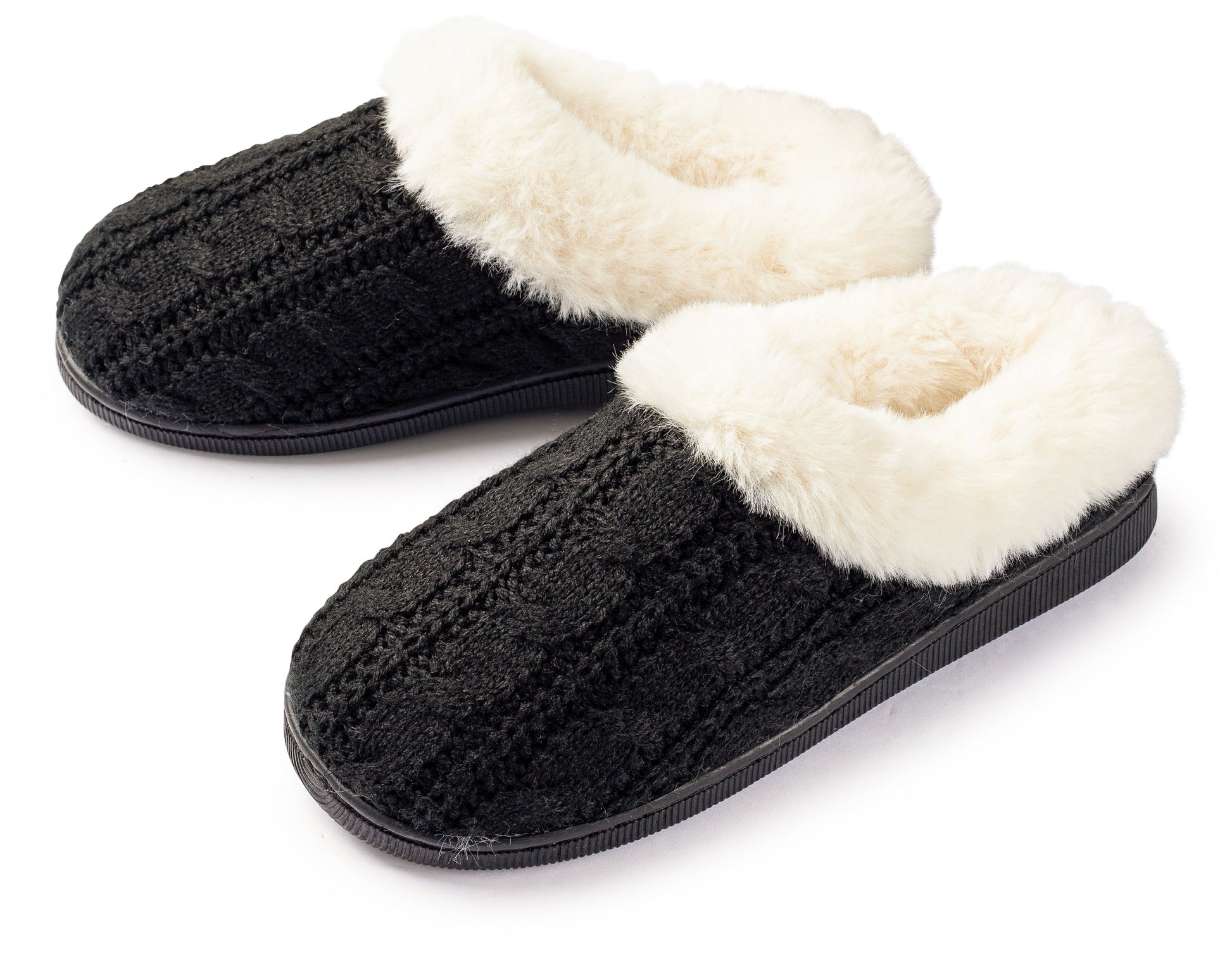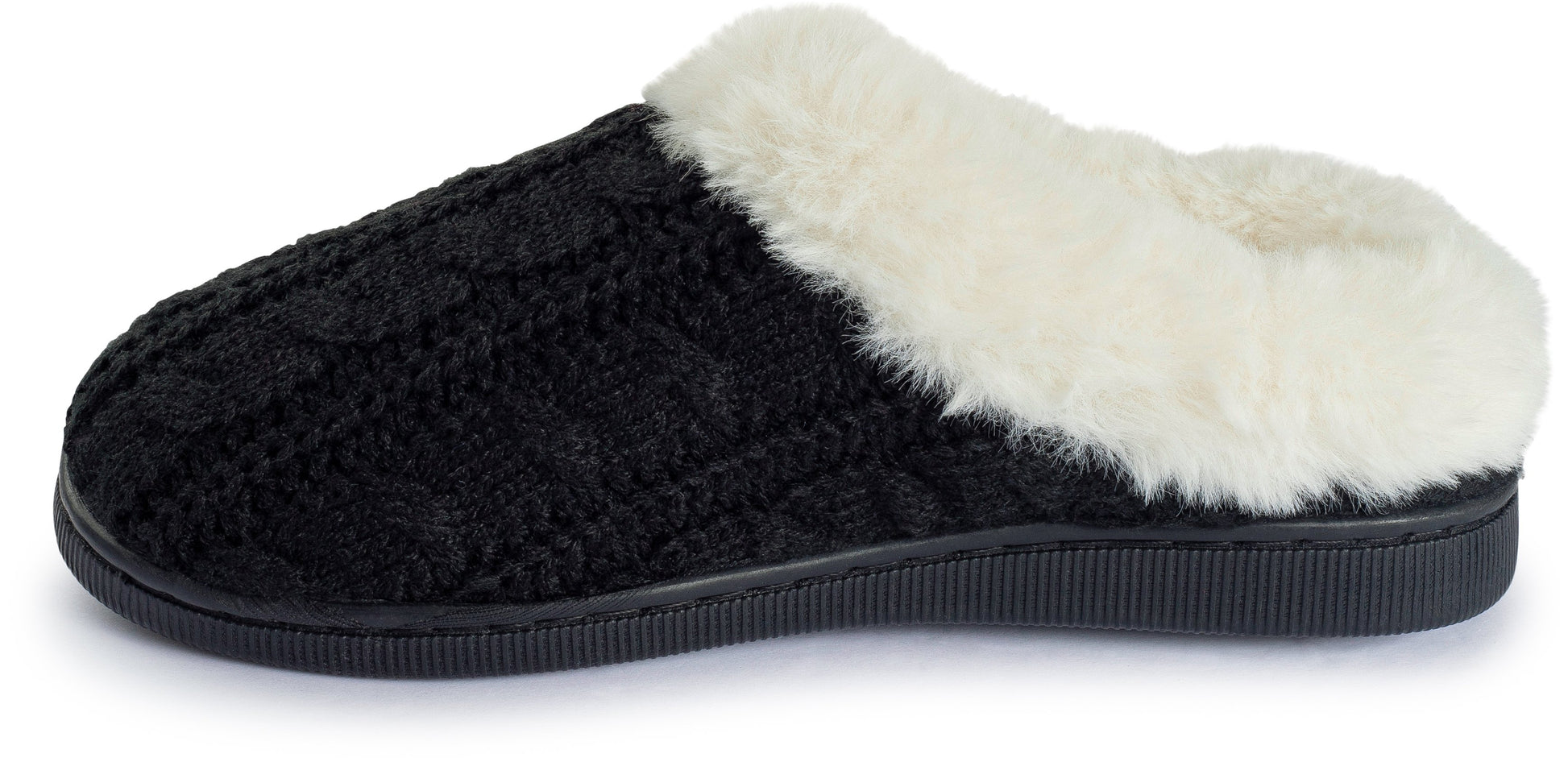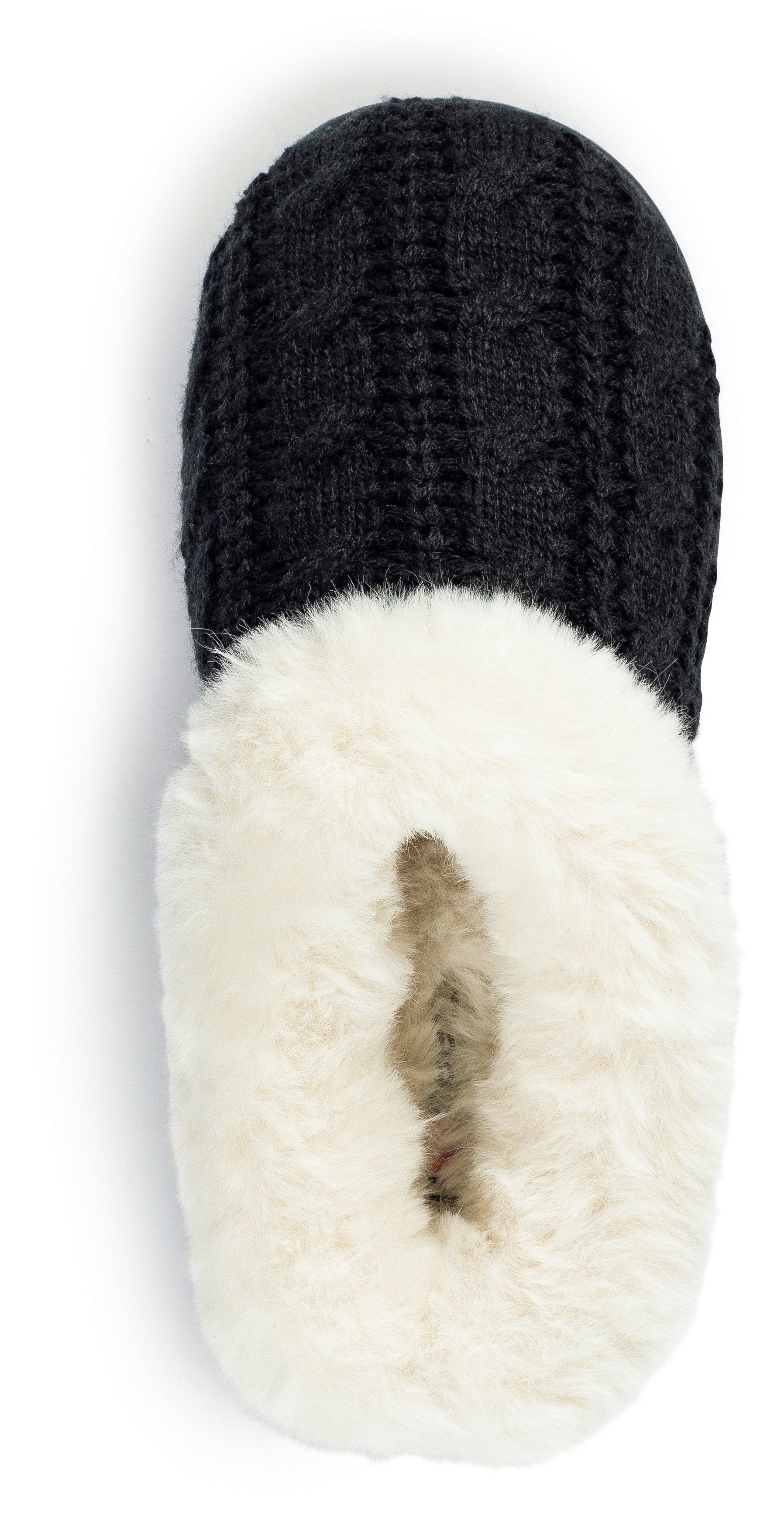 Features: -Cable Knit upper for a plush, elegant and delicate touch. -Textured out-sole for durability & traction; High density EVA sole, soft and lightweight. -Cushioned foot bed molds to the foot for a perfect fit; great for wearing all day long. -Great for indoor and outdoor use. -Very comfortable and always trendy. -Super comfy fleece insole. -Durable rubber sole for long lasting comfort.
