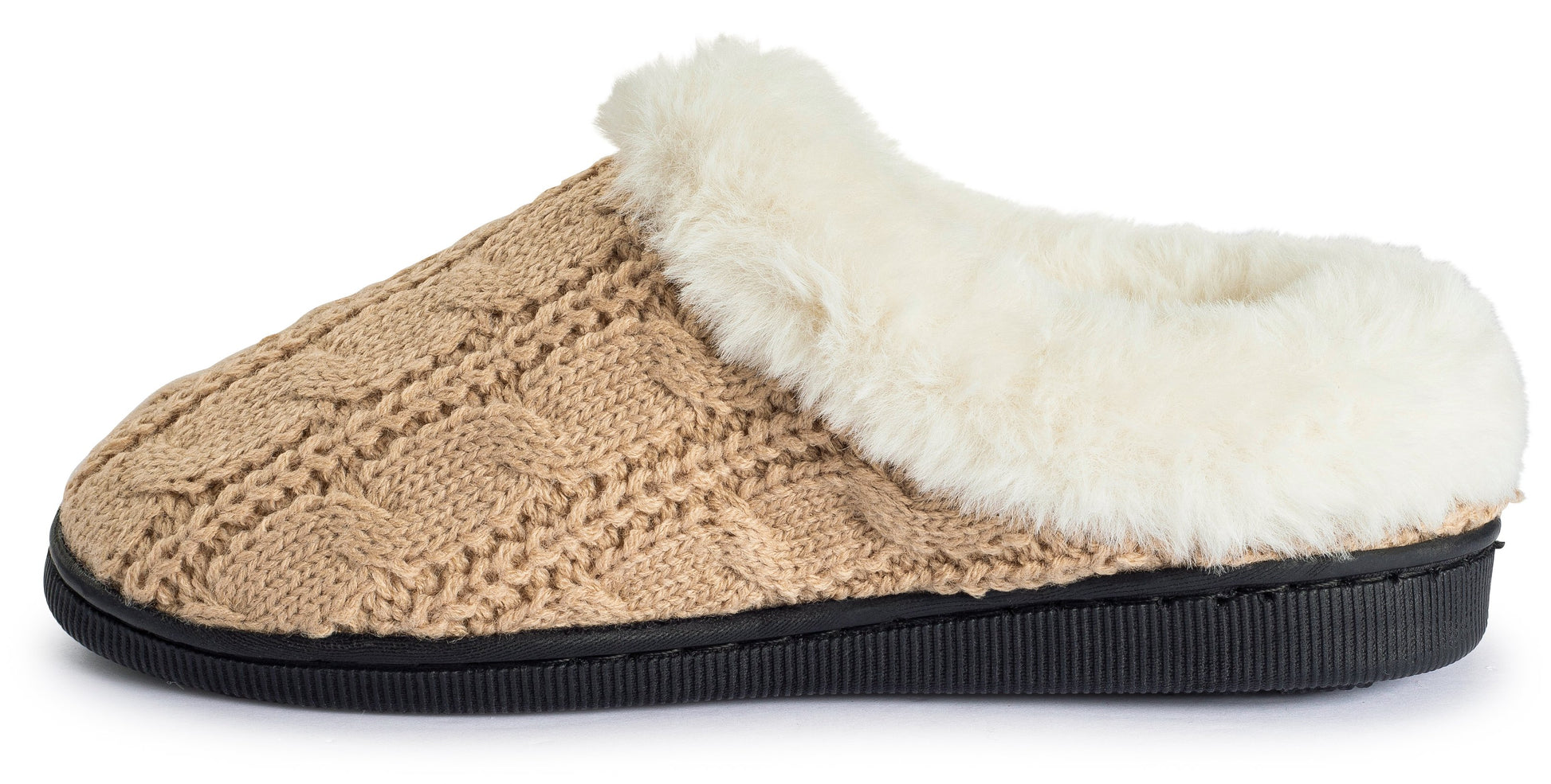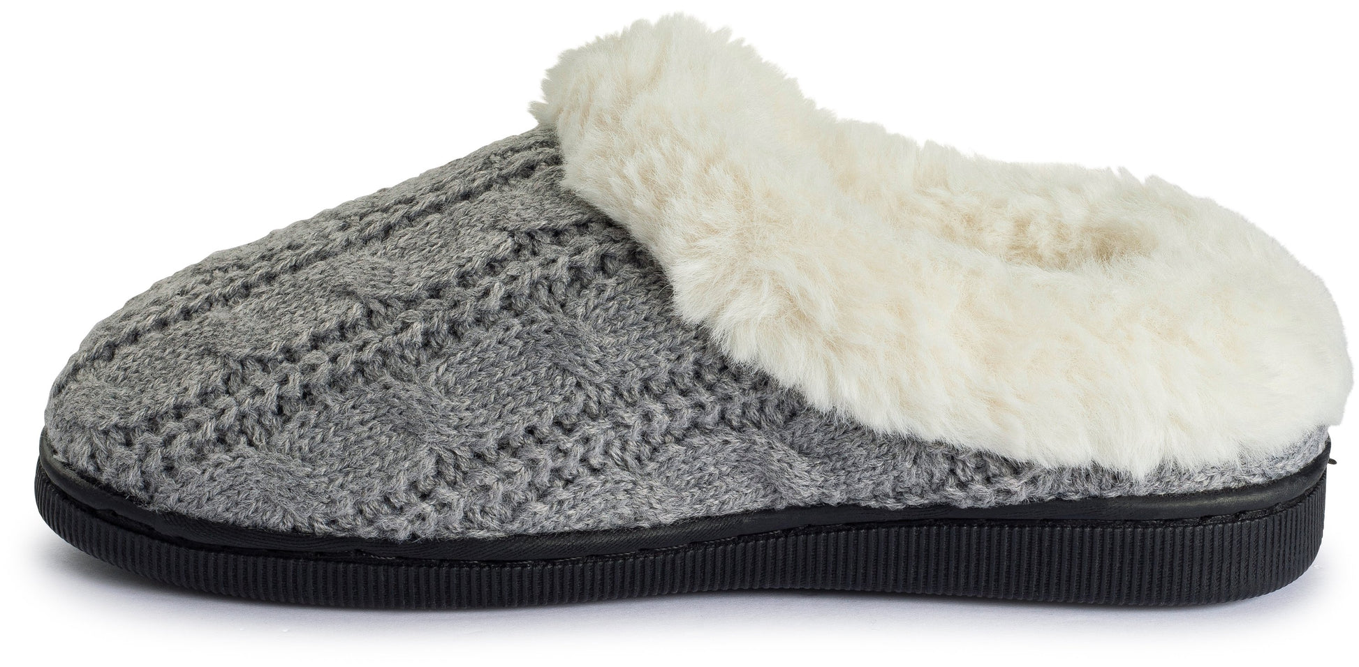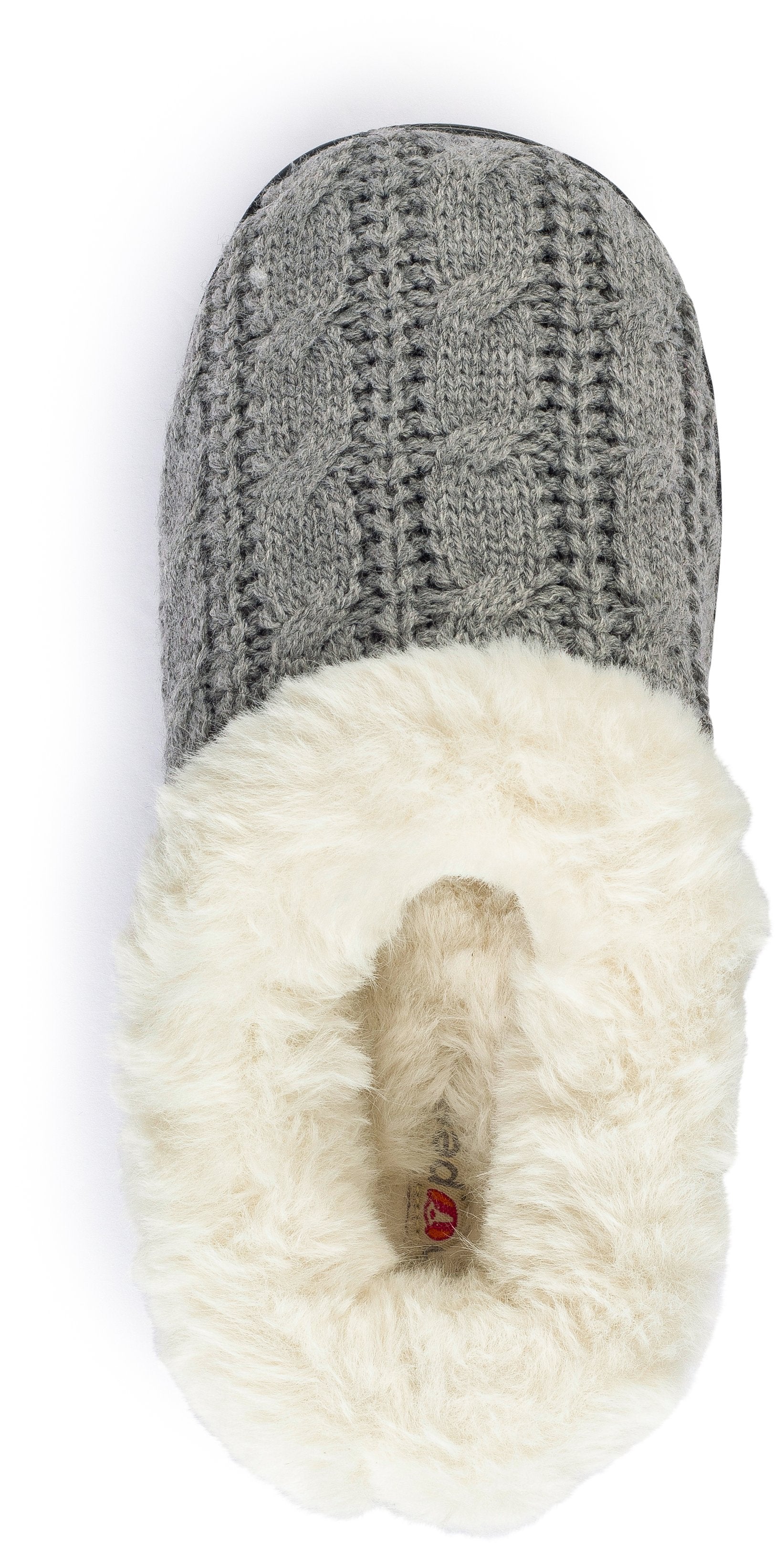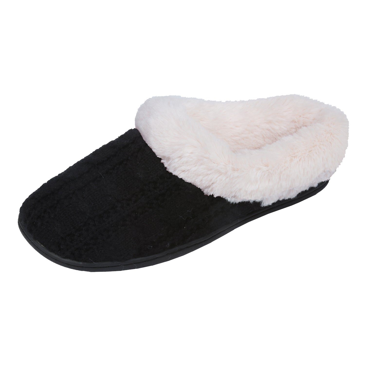 Features: -Cable Knit upper for a plush, elegant and delicate touch. -Textured out-sole for durability & traction; High density EVA sole, soft and lightweight. -Cushioned foot bed molds to the foot for a perfect fit; great for wearing all day long. -Great for indoor and outdoor use. -Very comfortable and always trendy. -Super comfy fleece insole. -Durable rubber sole for long lasting comfort.