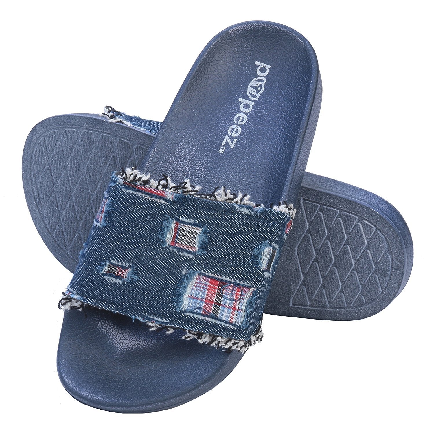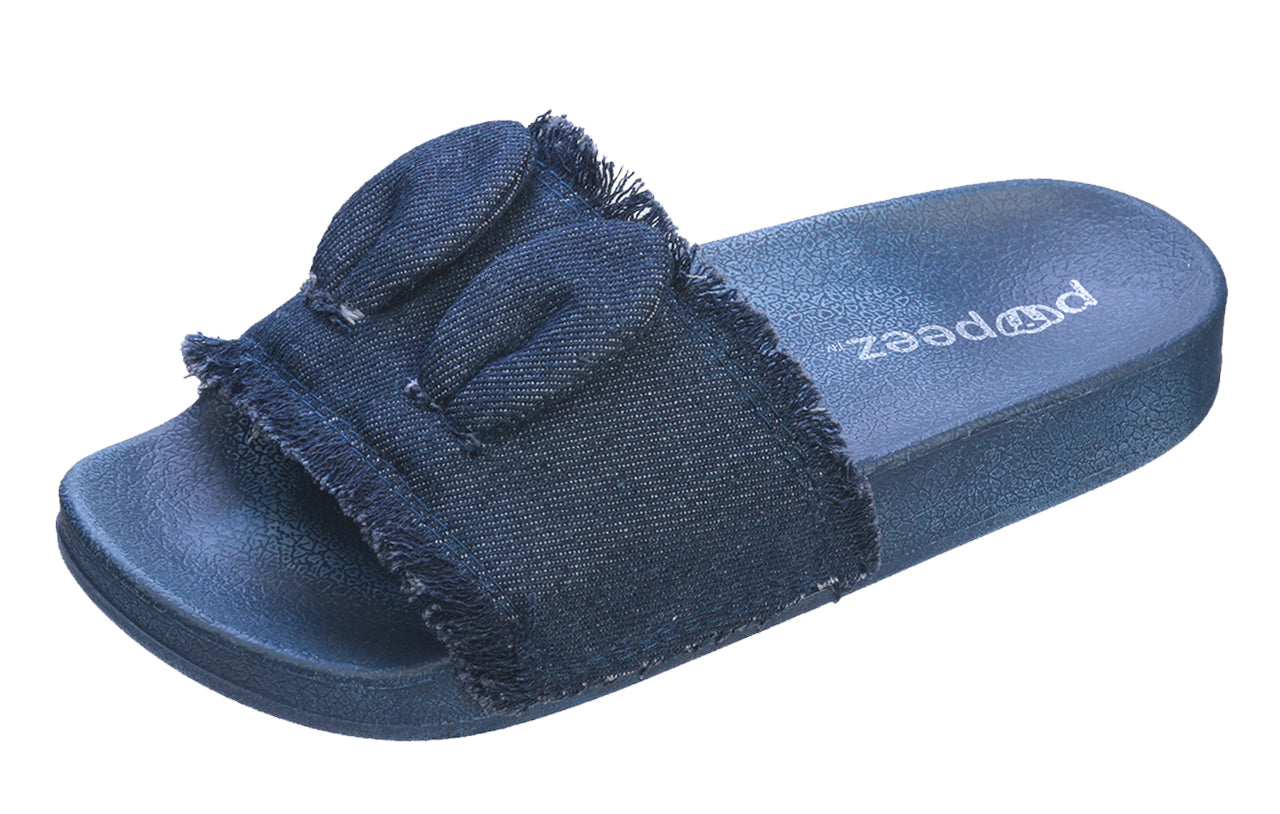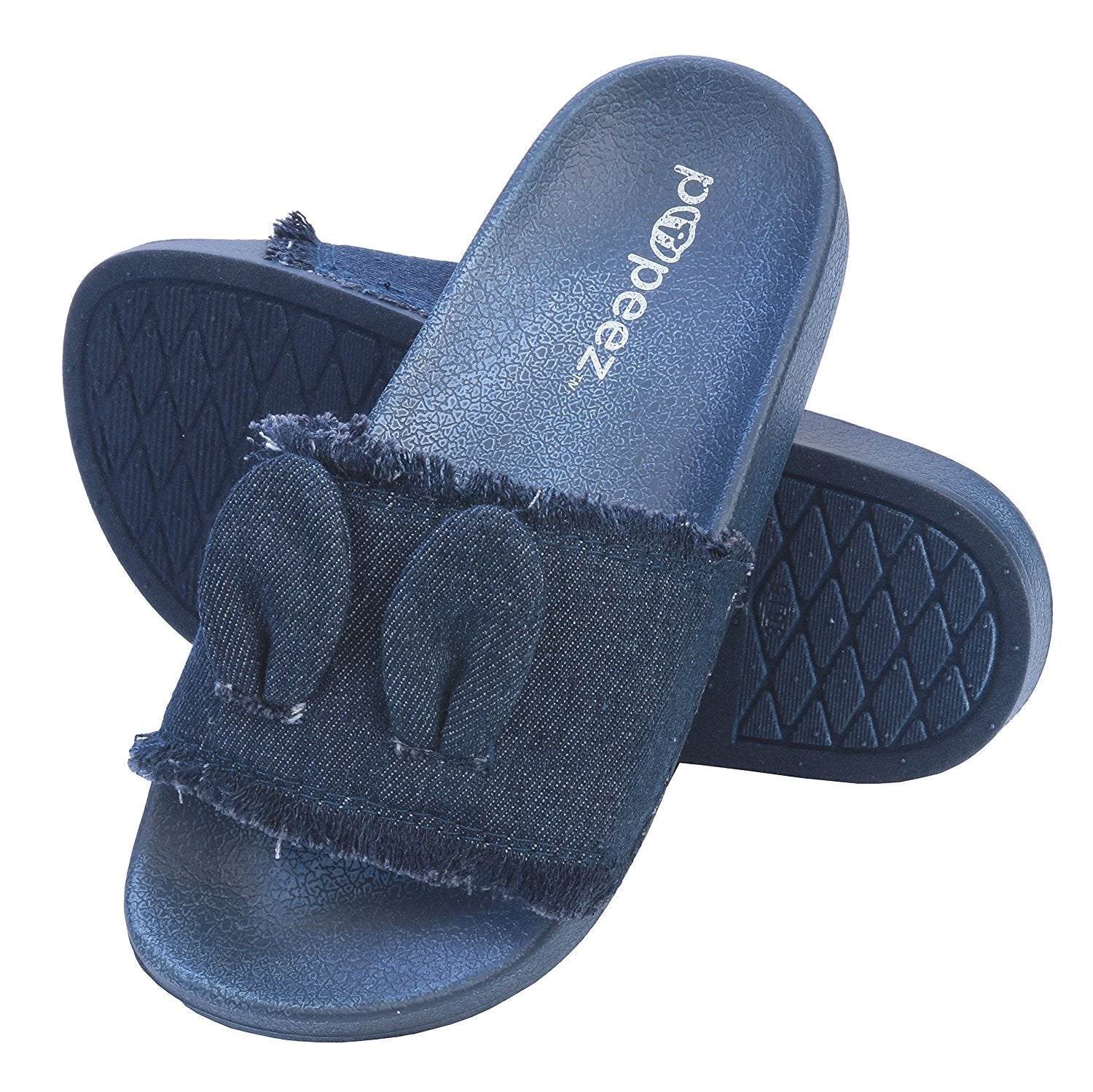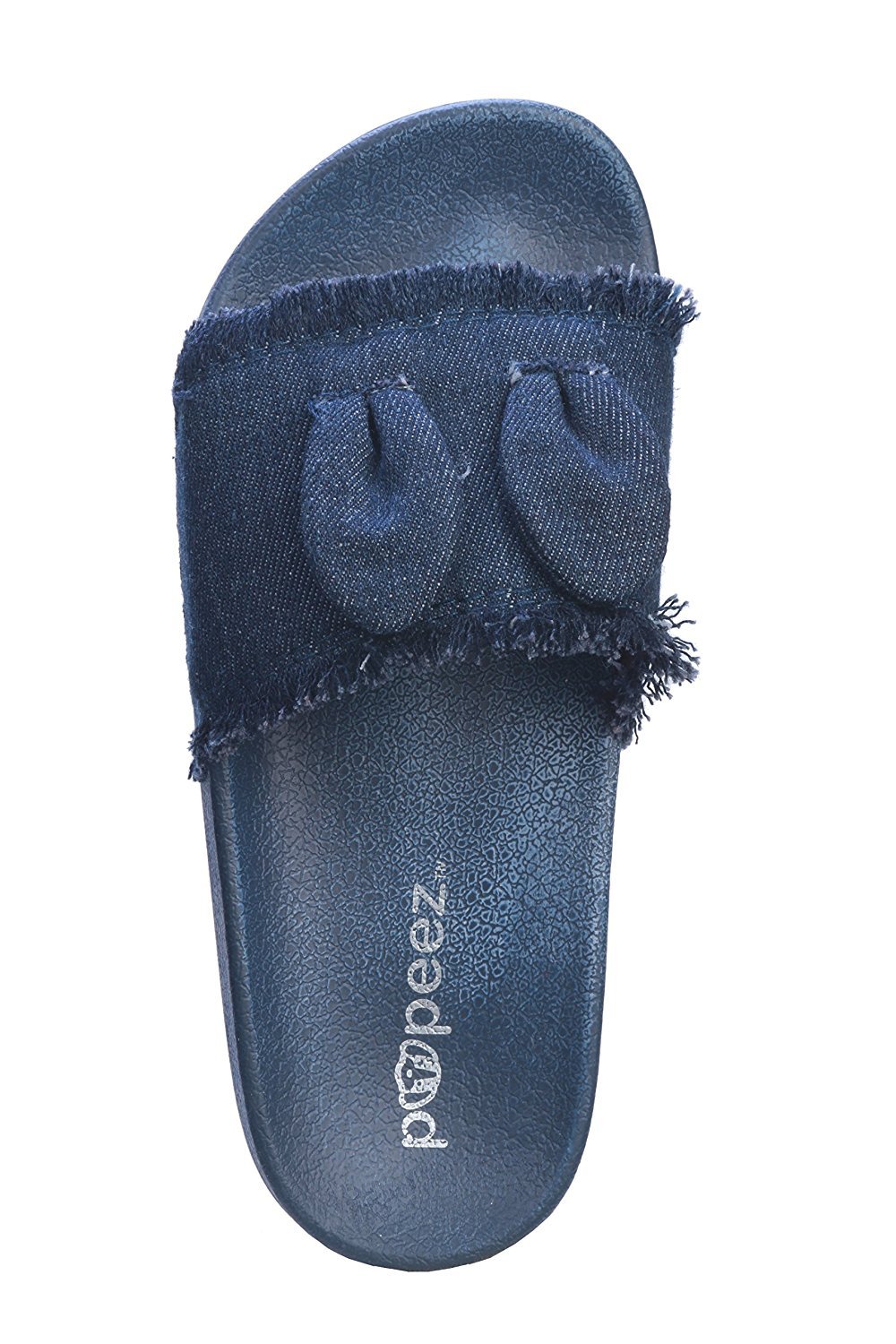 Pupeez Girl's Sandals Open Toe Slide Denim Slipper