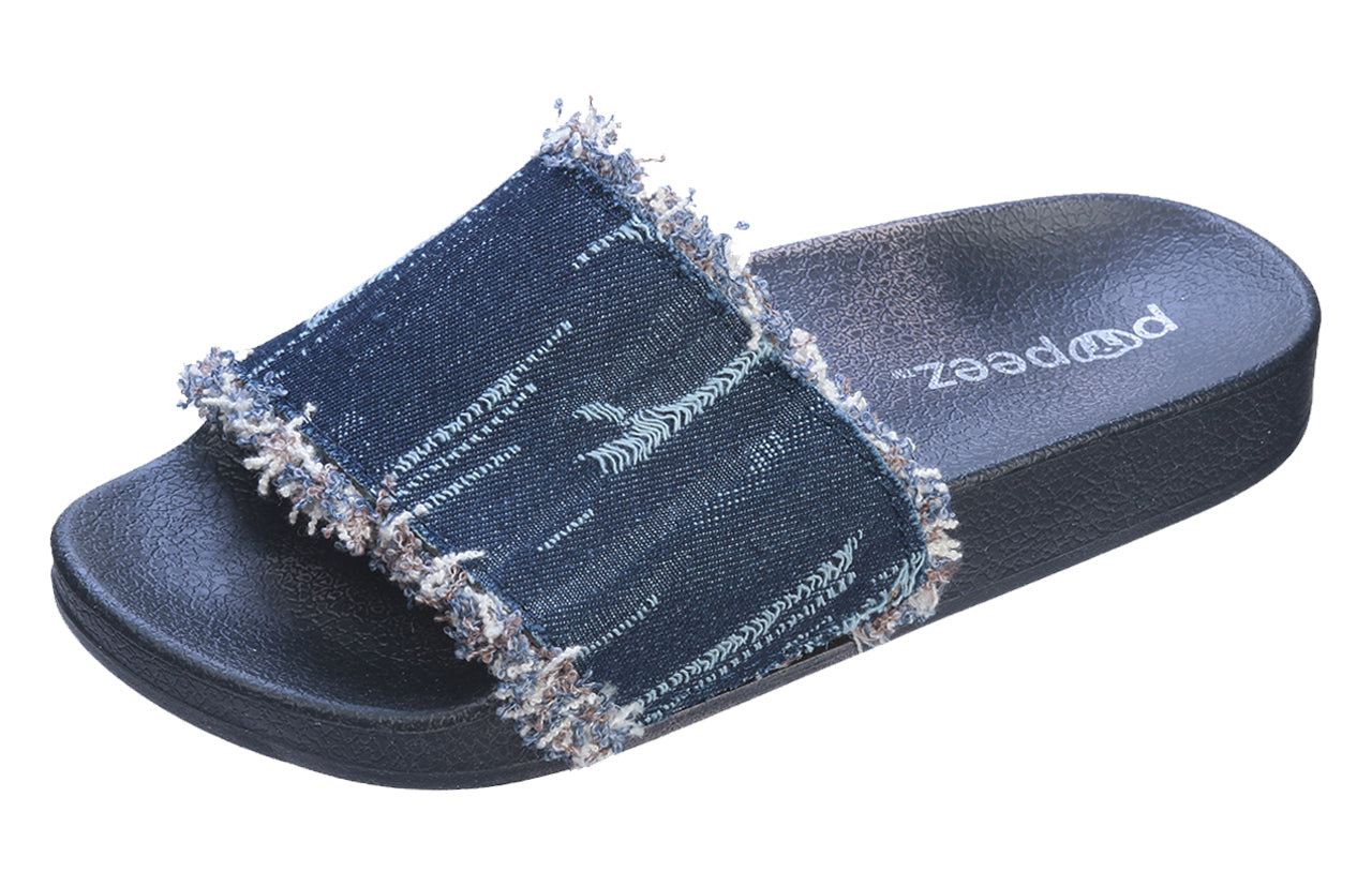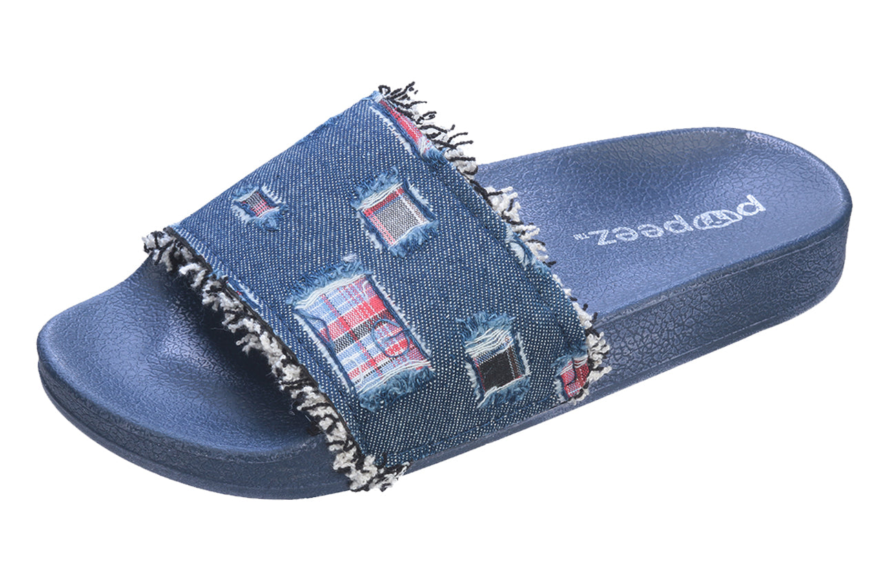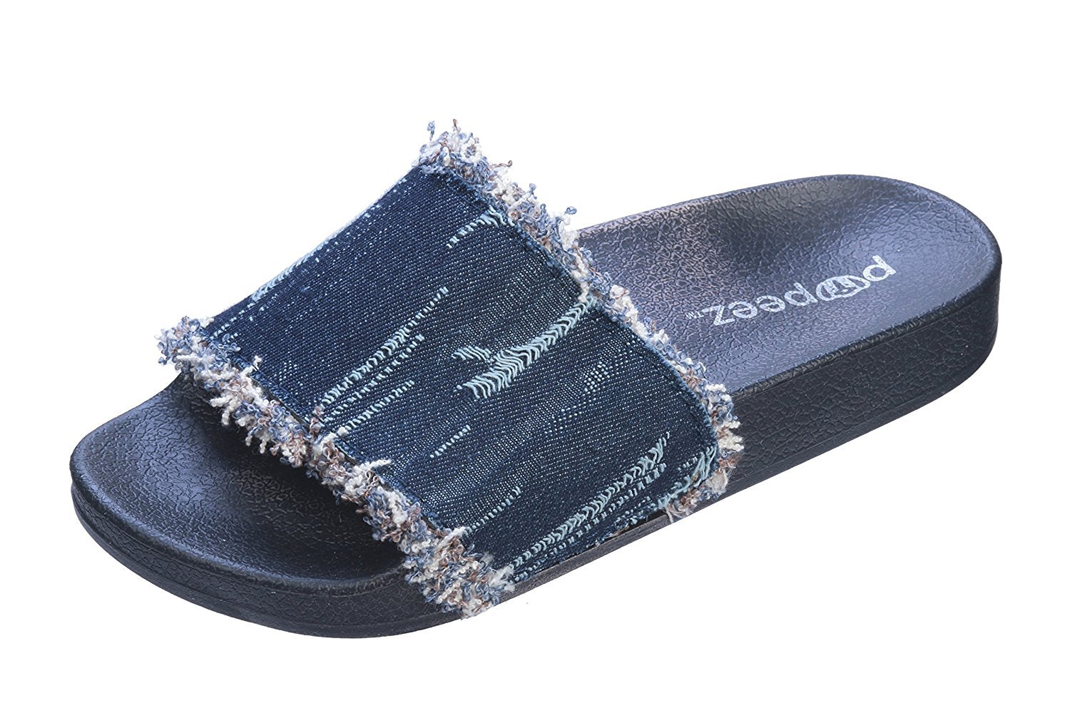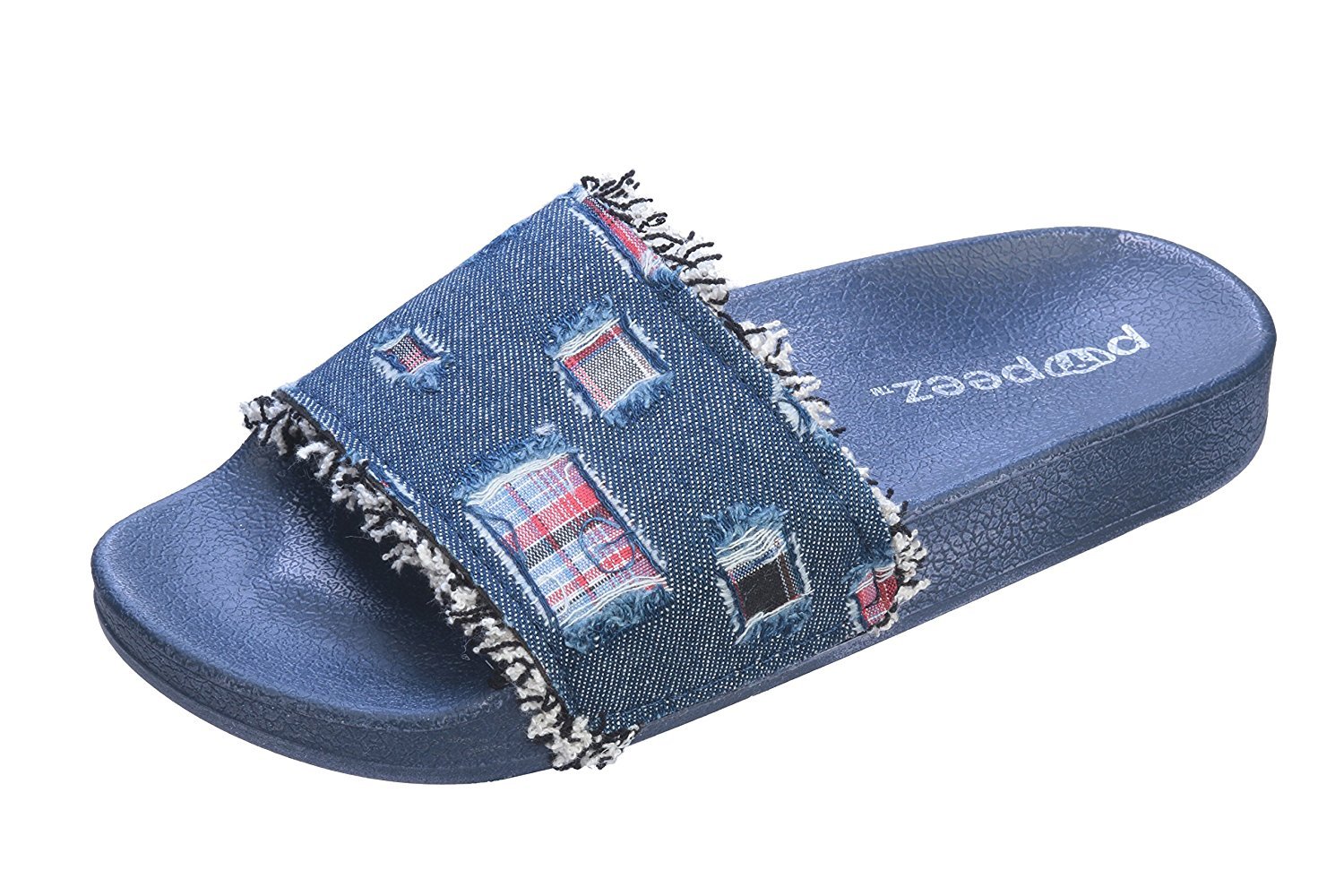 Pupeez Girl's Sandals Open Toe Slide Denim Slipper