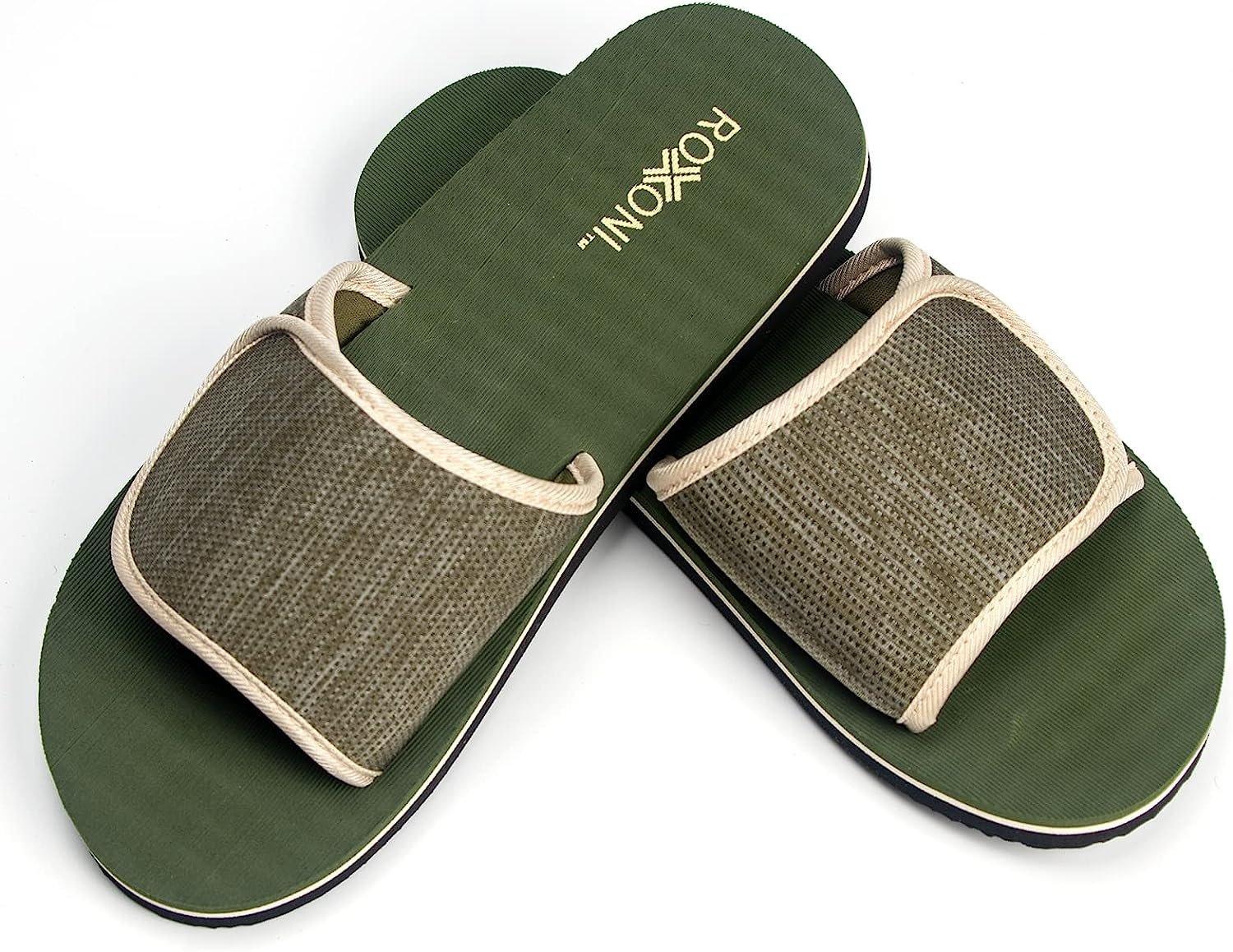 Roxoni Boys and Men’s Open Toe Slipper Sandals for Indoor/Outdoor Fashion Father and Son Matching Slippers in Blue, Olive Green and Black