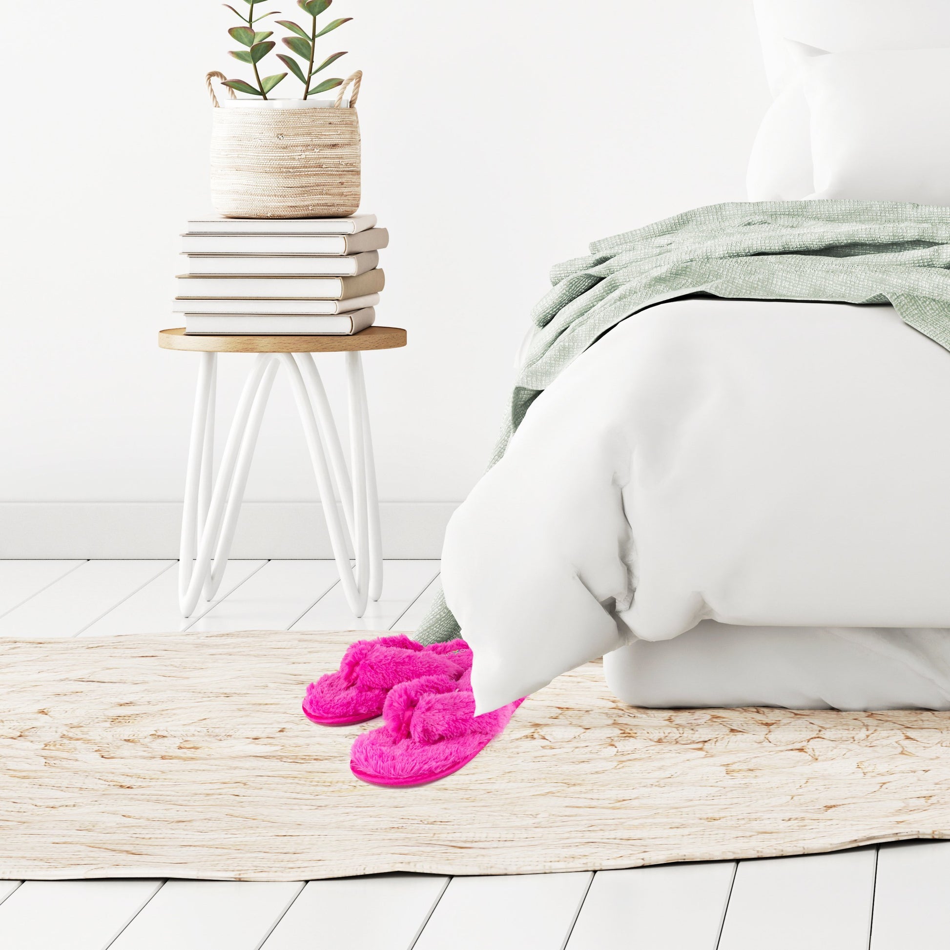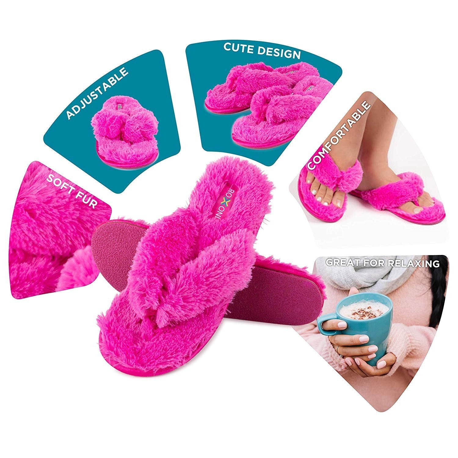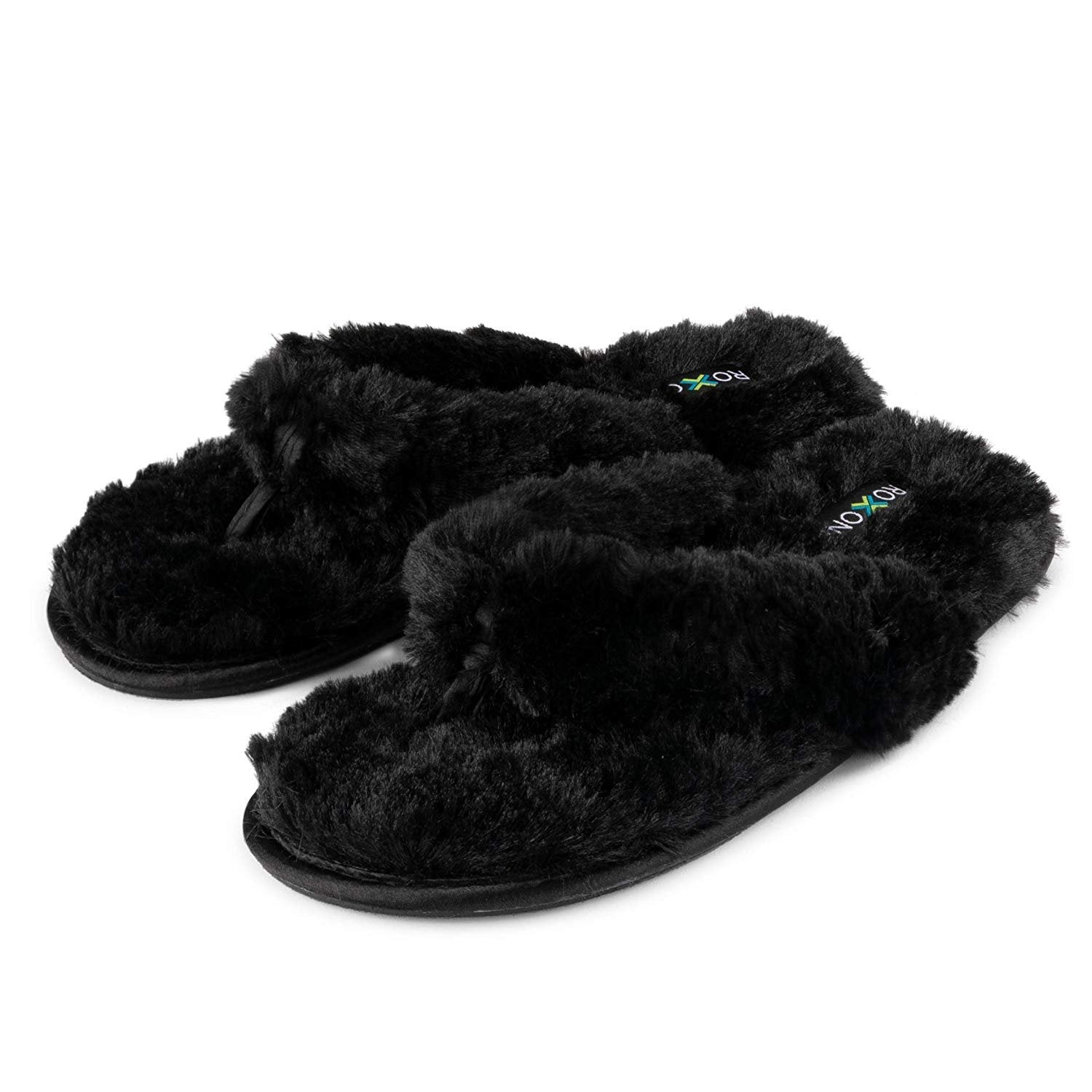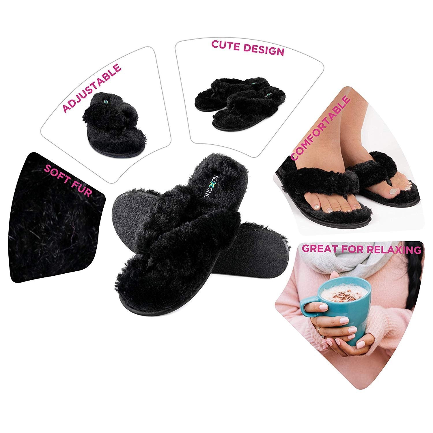 Roxoni Fuzzy House Slippers for Women – Comfortable Furry Spa Thongs – Cozy Slip On Flip Flops - Soft Insole & Rubber Outsole