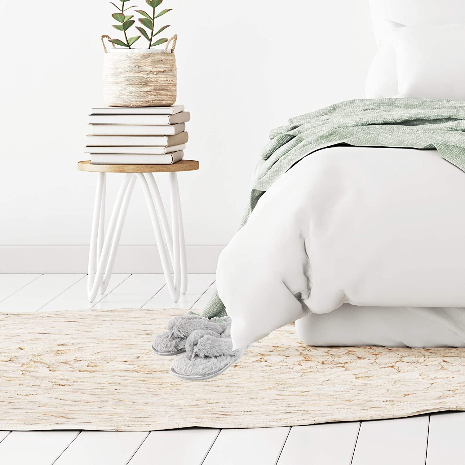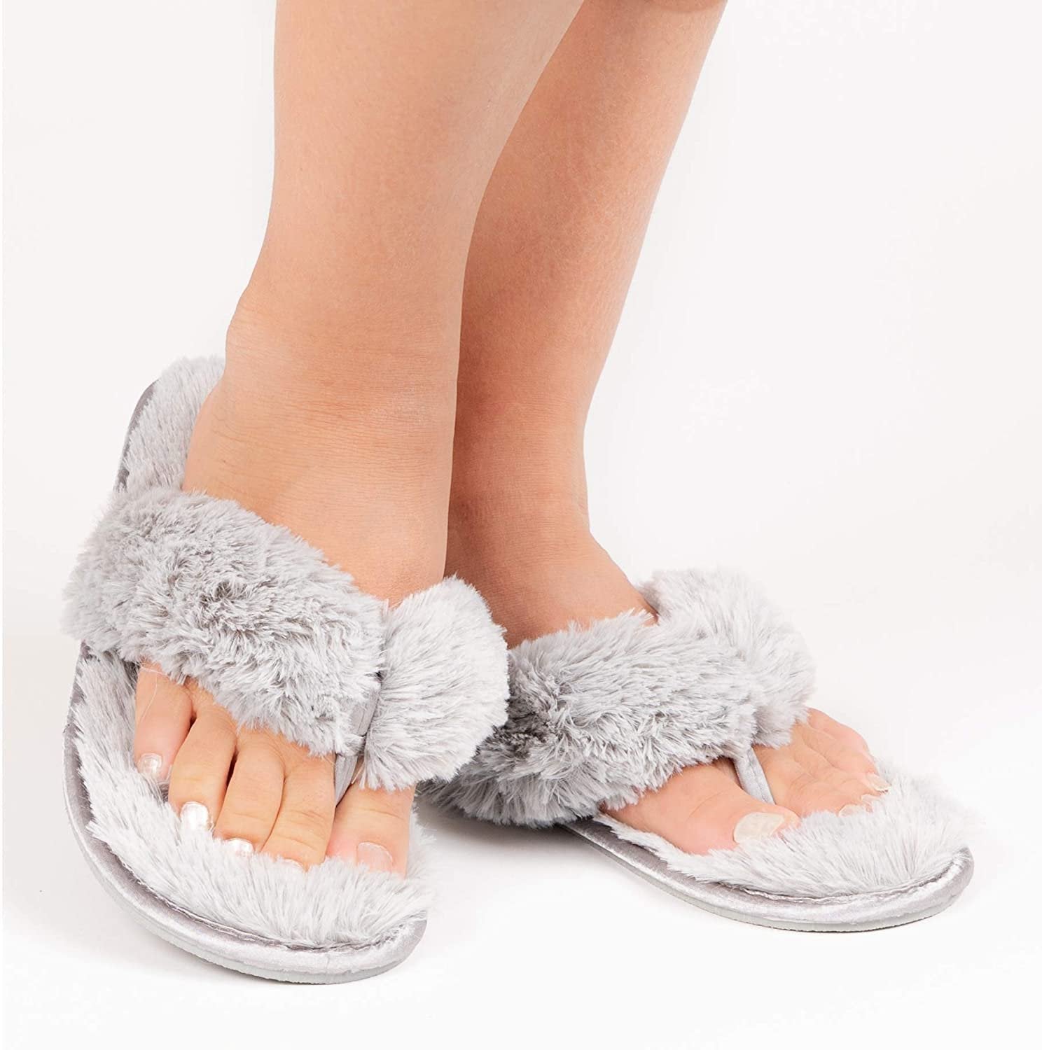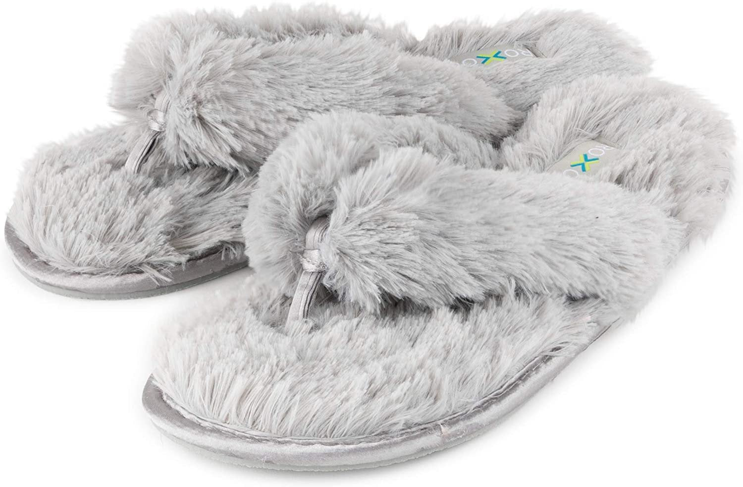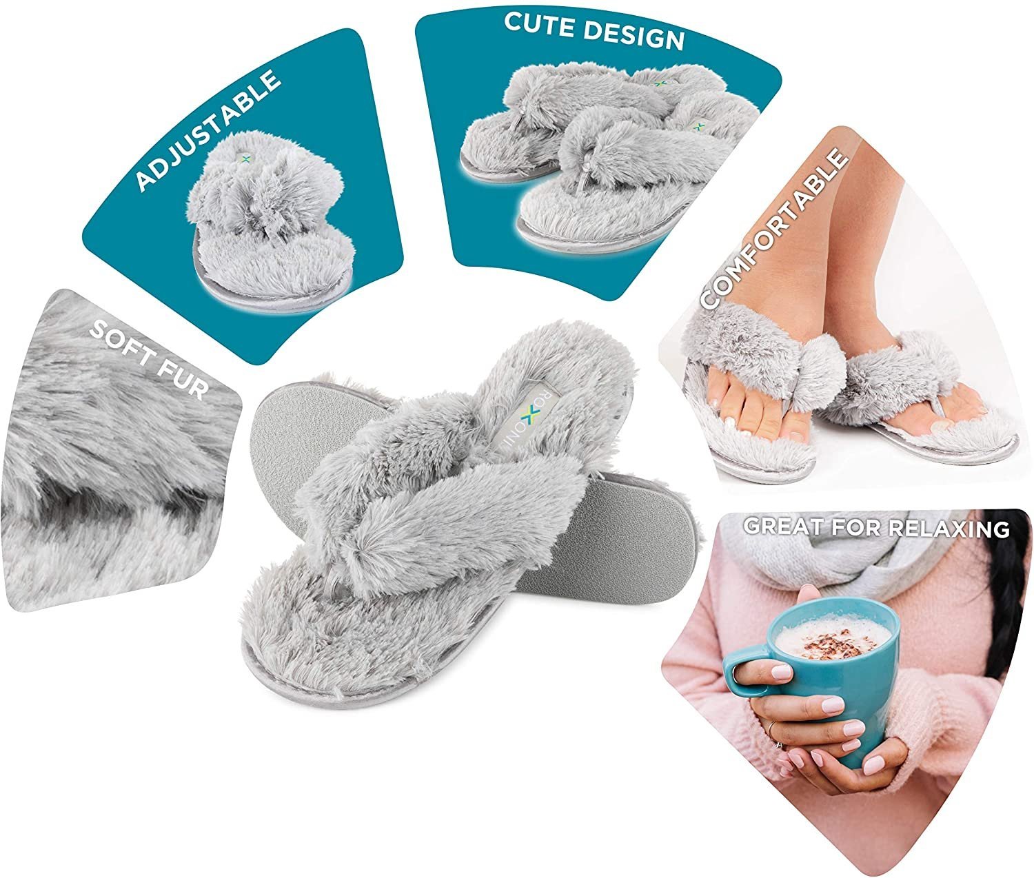 Roxoni Fuzzy House Slippers for Women – Comfortable Furry Spa Thongs – Cozy Slip On Flip Flops - Soft Insole & Rubber Outsole
