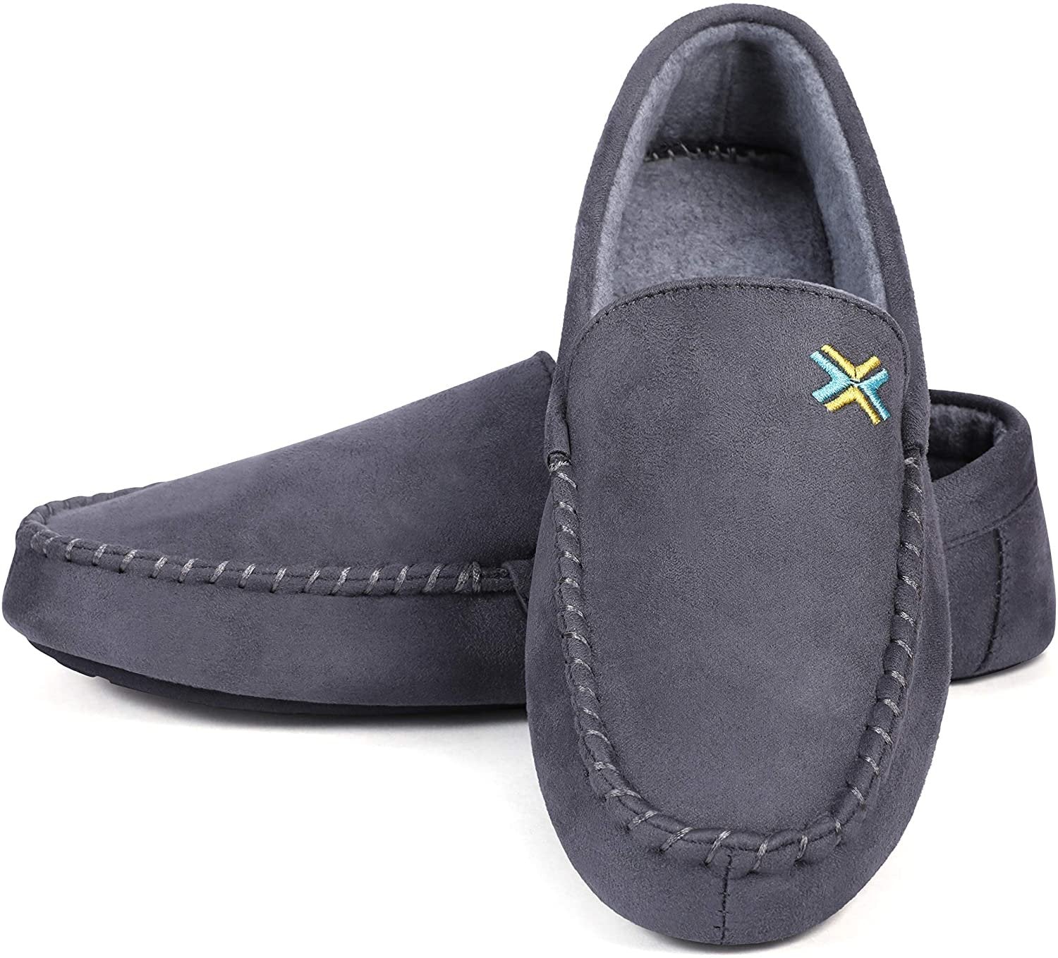 Roxoni Mens Slippers, Suede Moccasin Slipper with Memory Foam