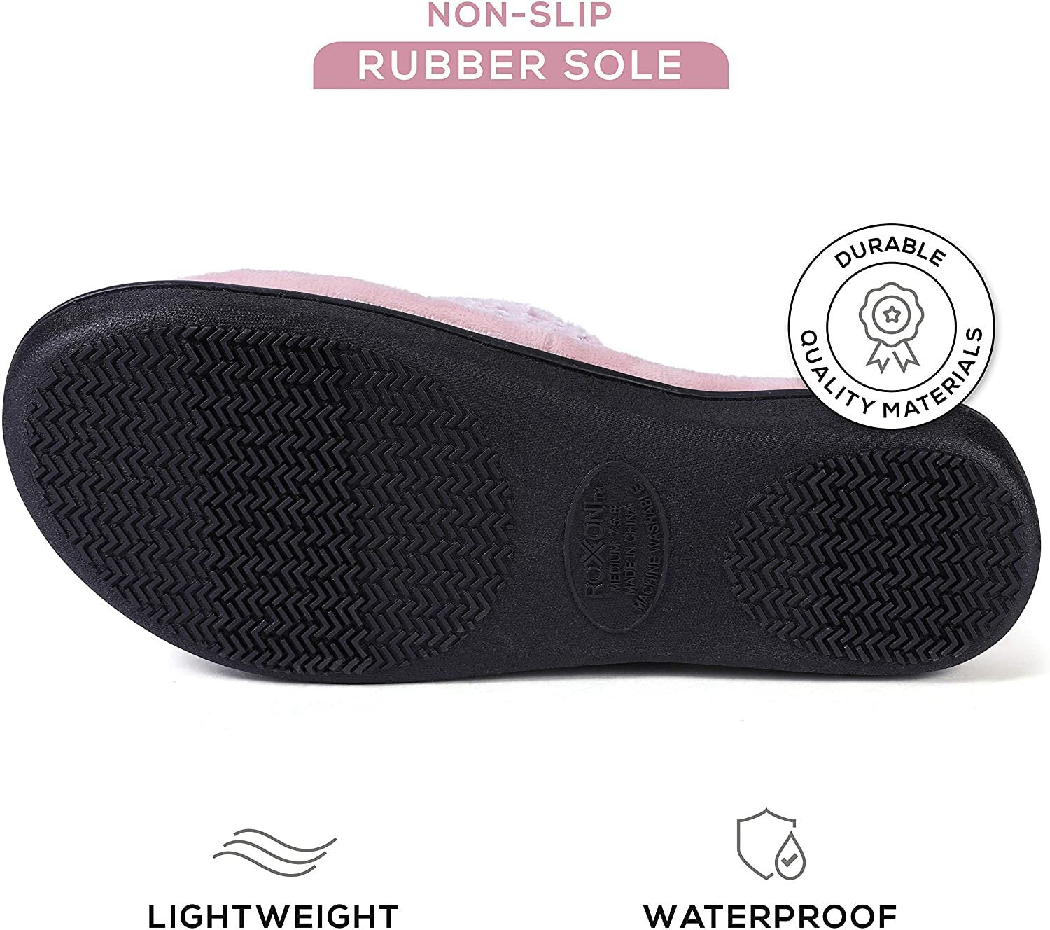 • DURABLE AND ANTI-SKID RUBBER SOLE: A lightweight design and anti-slip rubber sole provides traction for safe and comfortable wear. The non-skid rubber sole makes these plush house slippers suitable for indoor and outdoor use, while walking your dog or relaxing in your bedroom.