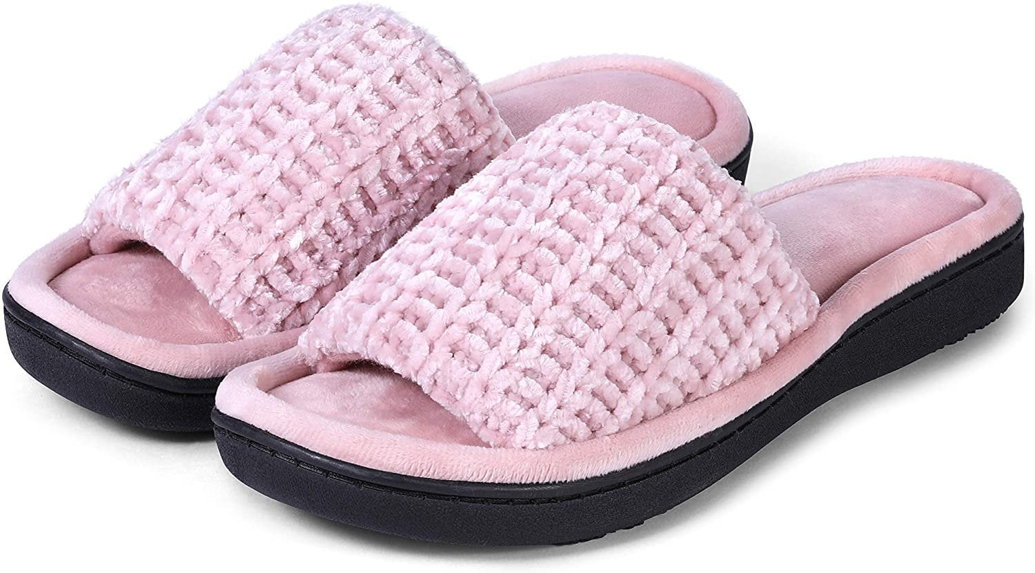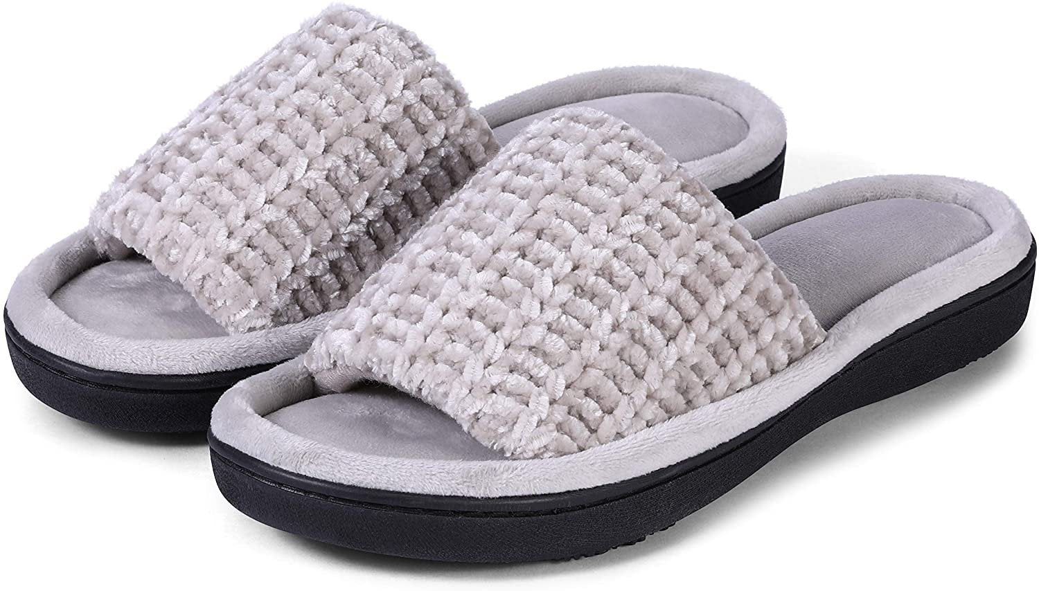 Roxoni Women's Soft Open Toe Slide Slippers, Indoor Outdoor Rubber Sole